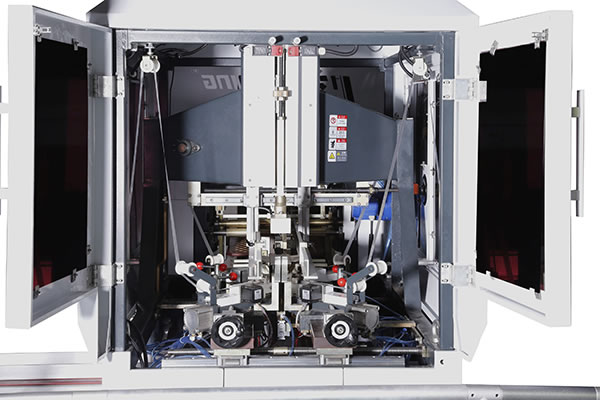يتم تشغيل وحدة التغذية، جهاز التصفيح والناقل بواسطة المحرك المؤازر الذي يتميز بنقل الحركة المتغيرة باستمرار، الدقة العالية، التعديل السهل، استهلاك الوقت المنخفض. الناقل المزدوج اللون قادر على توفير الوقت بلا تغيير حزام اللون، والذي هو منتج ذو براءة الاختراع لشركة Hongming. وحدة التبقع تستخدم كاميرا ألمانيا ذات 5 مليون بكسل والذراع الآلي لأخذ وتبقع اللوح الرمادي، مما يعزز دقة التبقع بـ ±0.05 (مم). وحدة التشكيل تستخدم الدليل الخطي REXROTH ألمانيا ونظام التشغيل الظاهري بكامة الإدارة، لضمان الجودة المستقرة والتحرك بالطلاقة وتكبير نطاق عمق الطي وحواف الزاوية.